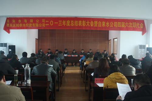 元月20日,公司召開2013年度總結表彰大會暨四屆六次職代會,會上,劉書政總經理作了題為《銳意進取 開拓創新 共鑄江都城鄉供水事業新輝煌》的報告,認真總結了2013年工作情況,具體明確了2014年目標任務,大會還組織對2013年度自來水公司、惠民公司先進集體和先進個人進行了集中表彰。區城鄉建設局副局長許金林出席會議,對公司全年工作給予了肯定,指出了公司今后工作的重點和努力的方向,并對廣大供水干部職工提出了殷切希望和要求。