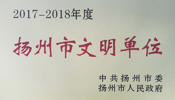 日前,揚州龍川水務公司獲得2017-2018年度“揚州市文明單位”榮譽稱號,公司自1997年爭創以來,已連創連獲該項榮譽。