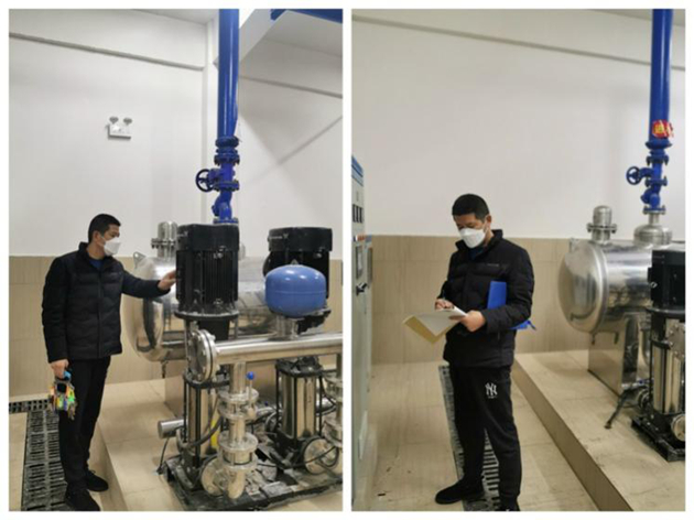 圖為工作人員在碧桂園小區二次供水泵房巡檢
