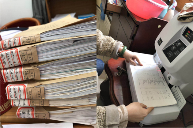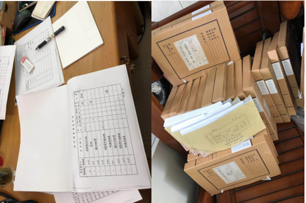圖為財(cái)務(wù)檔案整理現(xiàn)場及其所展示的相關(guān)工作流程
